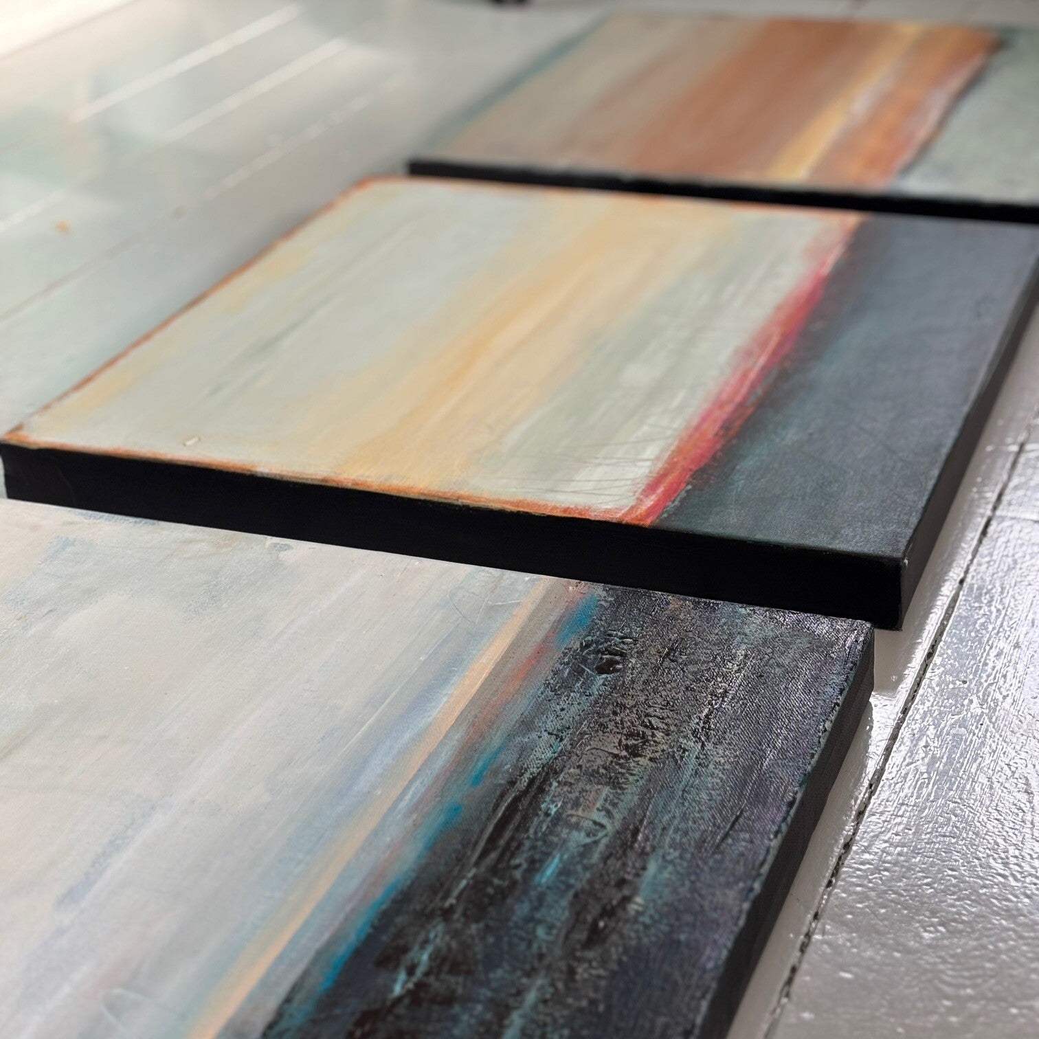 Akryl på lerret, 4 cm dyp kant malt sort, ferdig fernissert.
